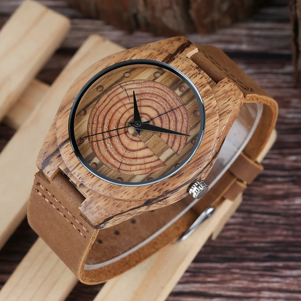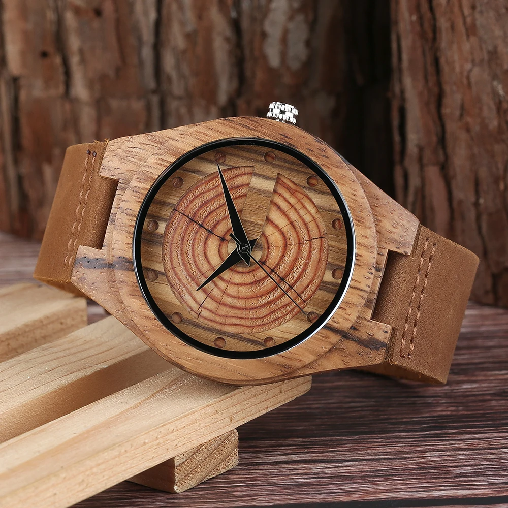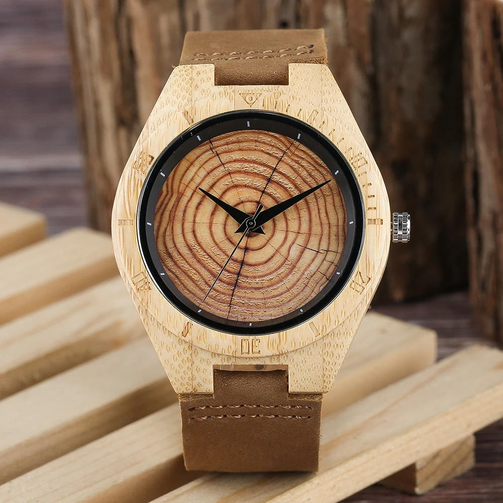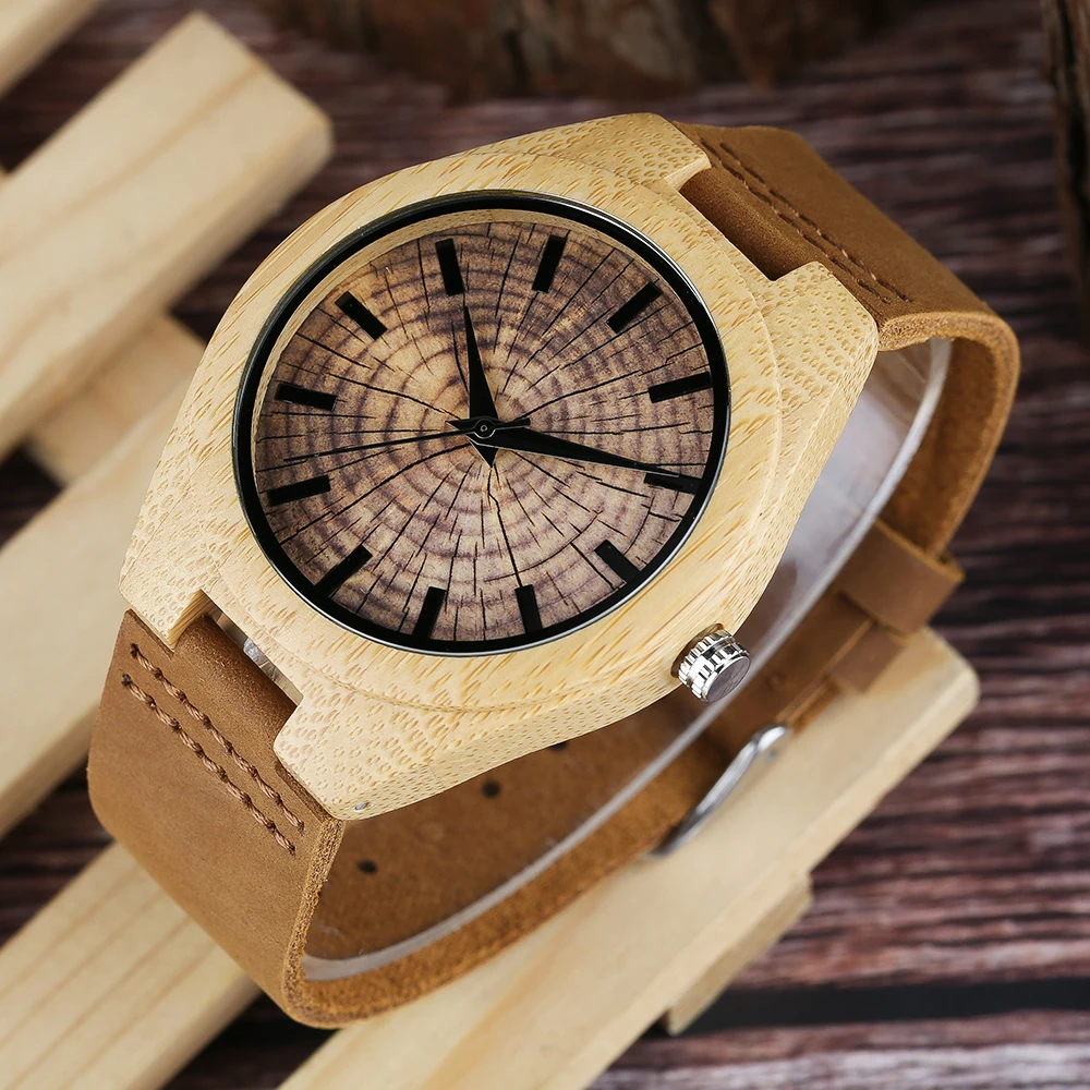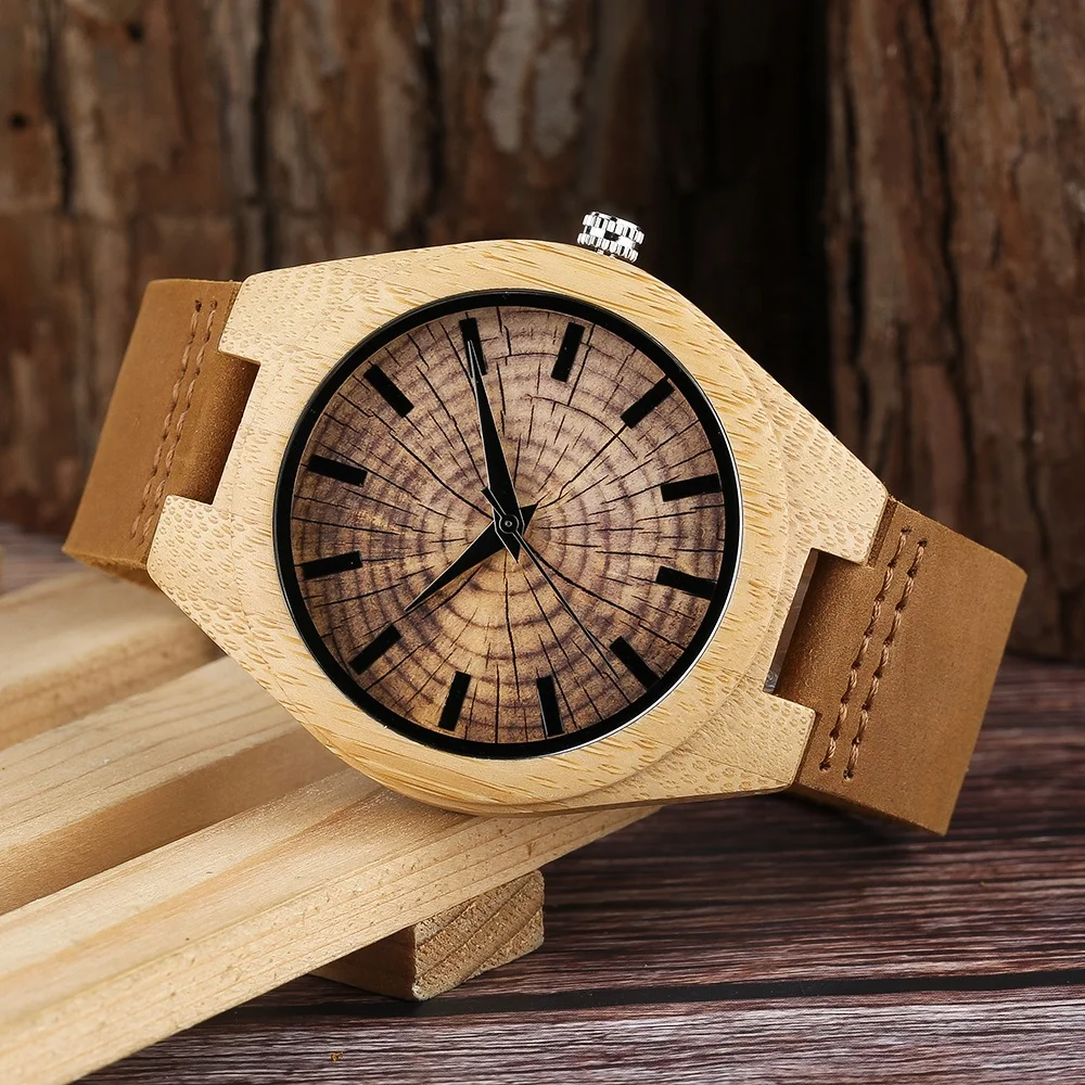 Fast Production No Logo Bamboo Wood Watch Engraving Wood Grain Leather Strap Wooden Watches for Men