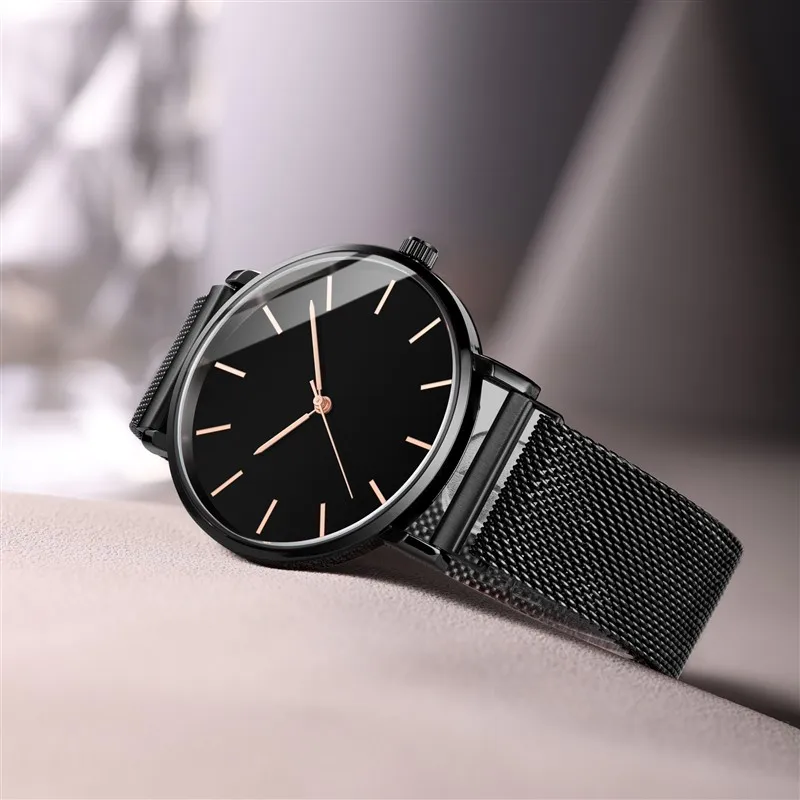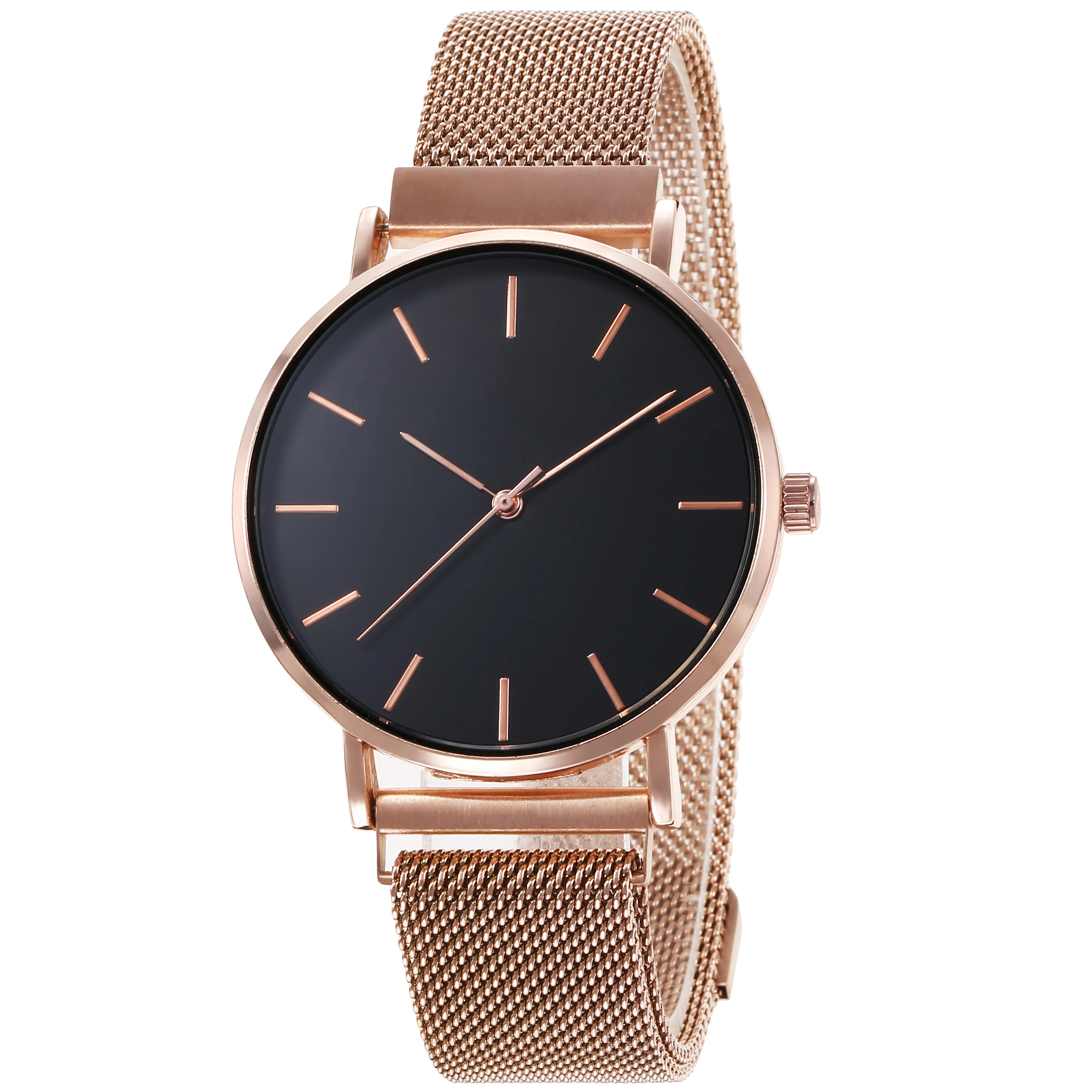 High Quality Minimalism Thin Men and Women Watch Stainless Steel Magnetic Mesh Strap Quartz Watch Gift Men Wristwatch No logo