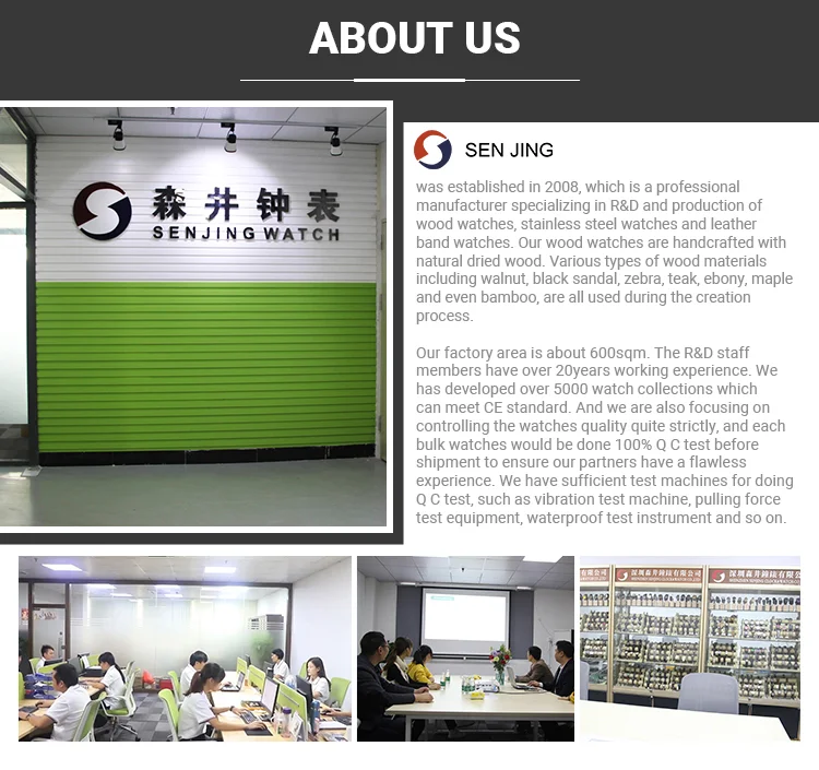 Established in 2008. Senjing Watch & Clock Co.. Ltd. operates as a specialized watch manufacturer. excelling in the development and production of watches. particularly known for its wooden timepiece collections. Over the course of many years. the company has grown to create and release more than 3000 distinct watch designs.