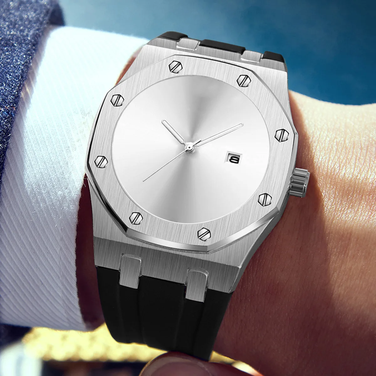 Watches Men Minimalist Niche No Logo Stainless Steel Silicone Strap Sport Watch