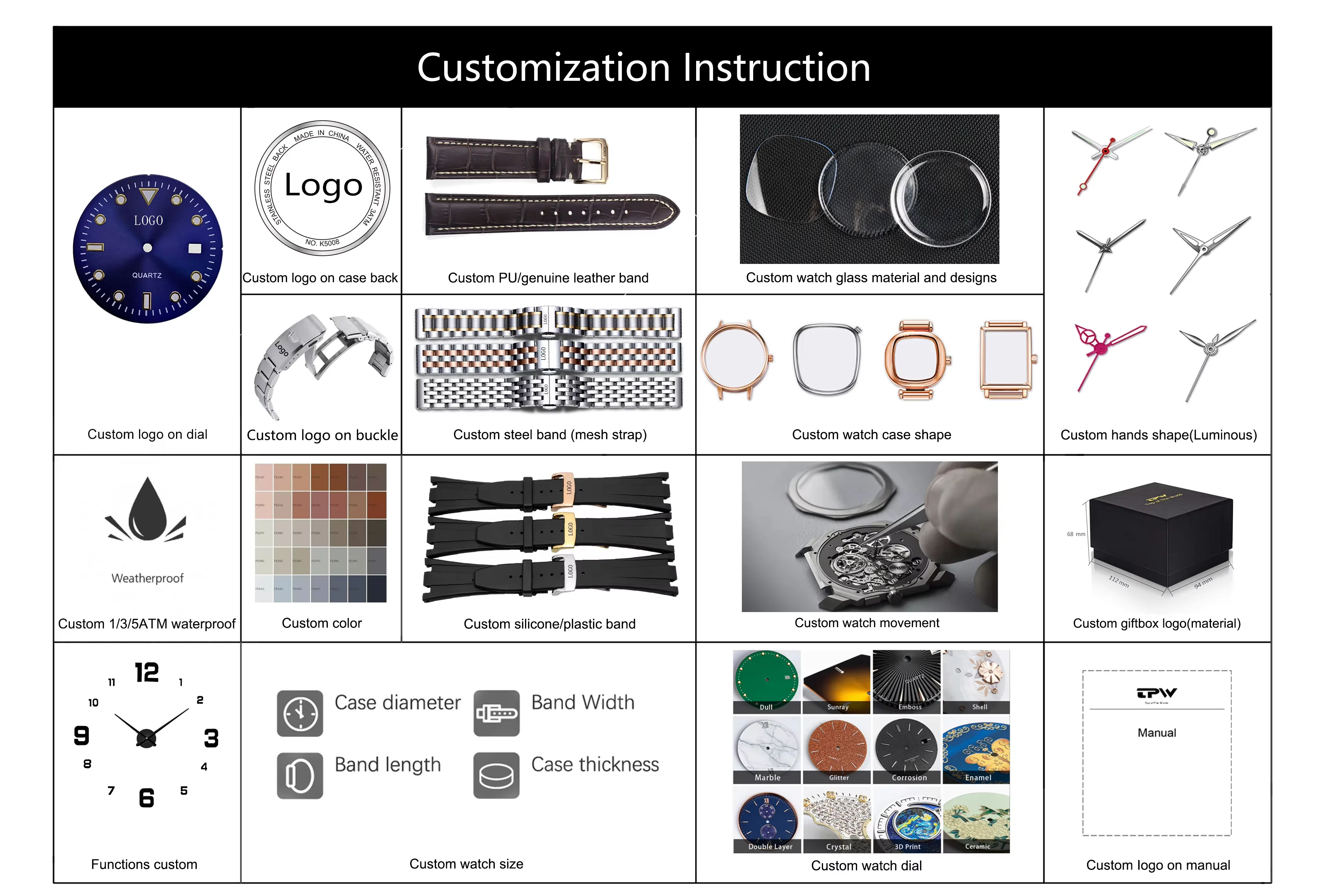Luxury Stainless Steel Custom Logo Quartz Watches